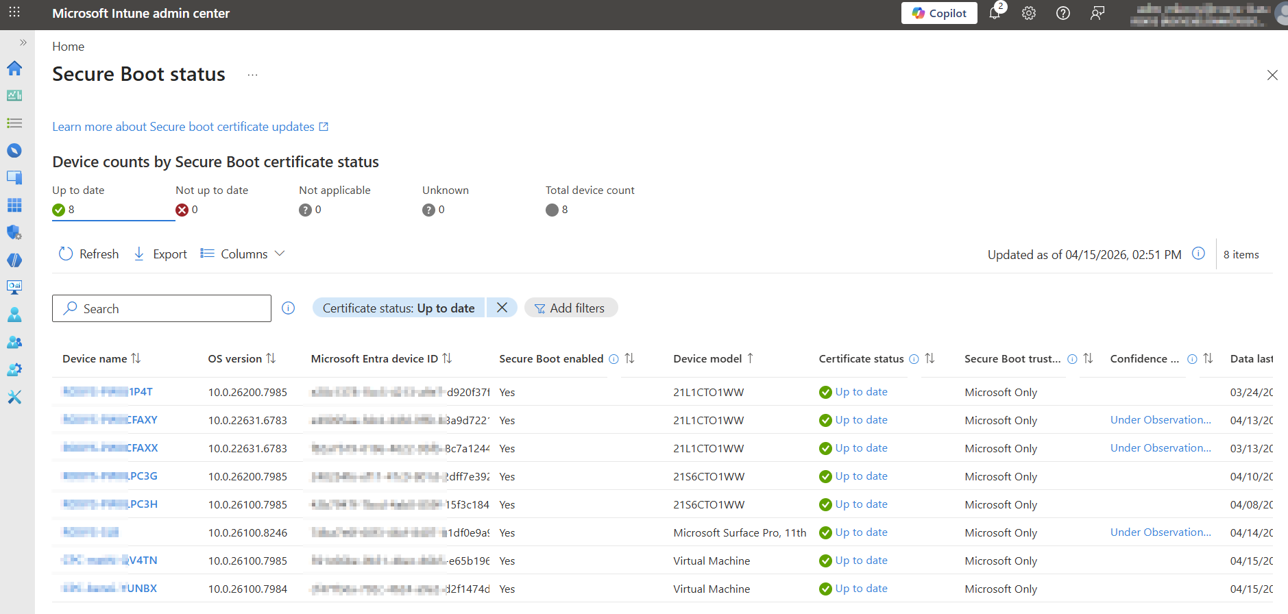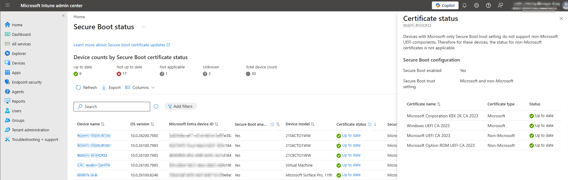 Cela paraît évident, mais il faut le vérifier. Un device sur lequel Secure Boot n’est pas activé ne suivra évidemment pas le même chemin qu’un poste déjà conforme!