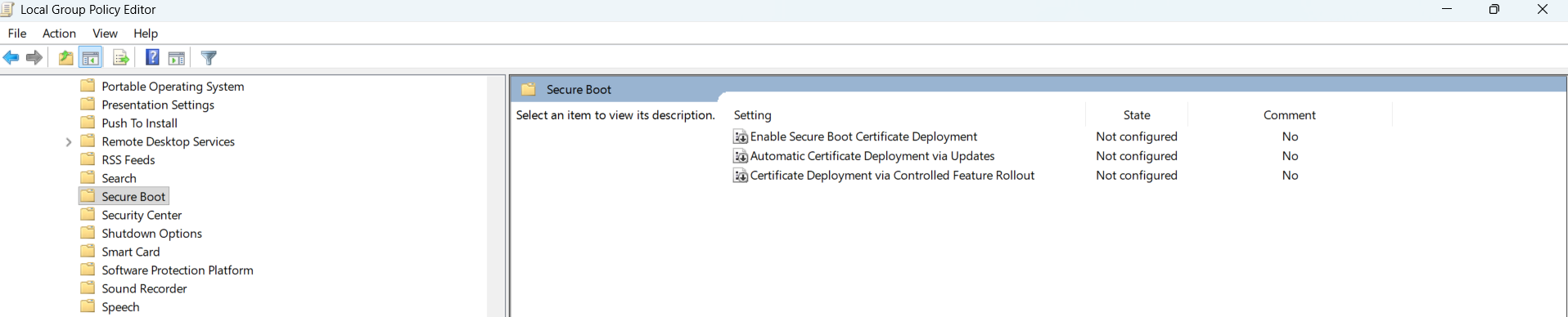 Computer Configuration > Administrative Templates > Windows Components > Secure Boot