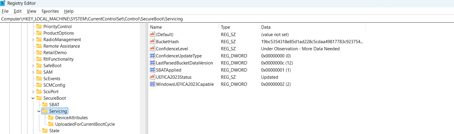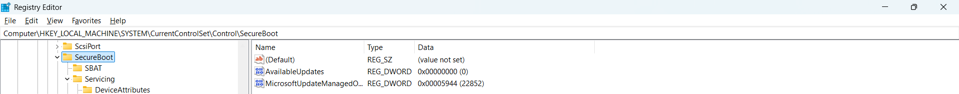 HKLM\SYSTEM\CurrentControlSet\Control\SecureBoot\Servicing