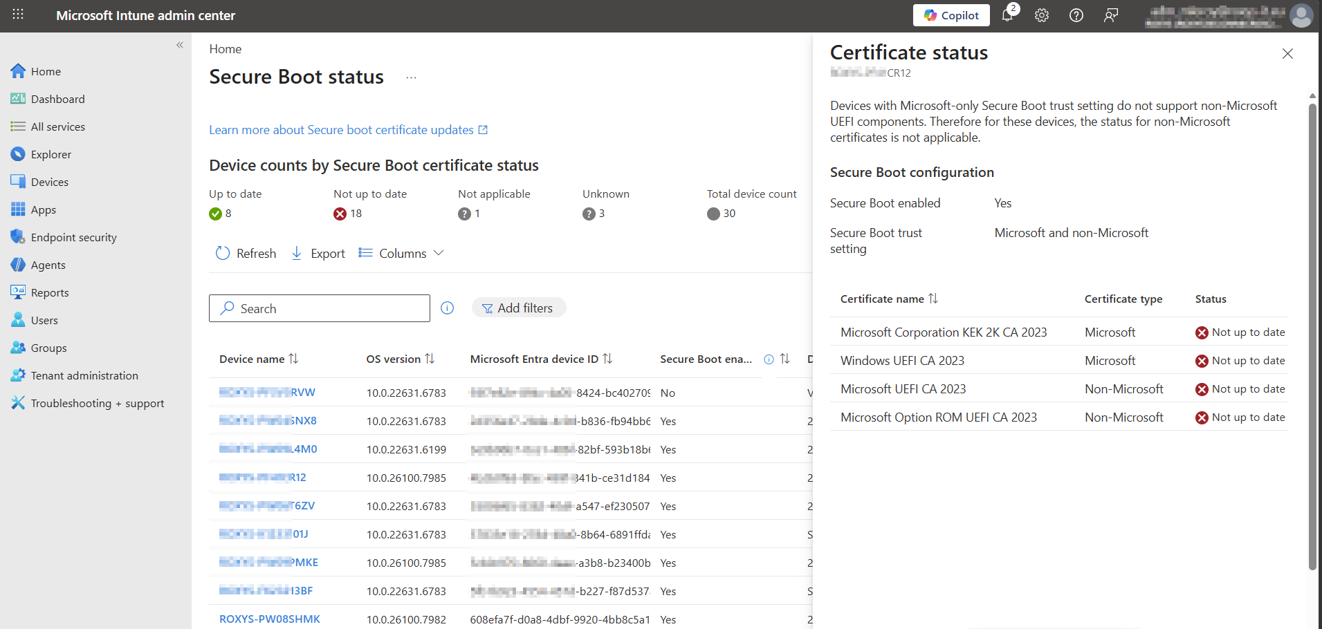 Le rapport Secure Boot status dans Intune sert d’abord à inventorier et planifier.